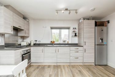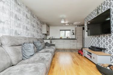 Entering through the front door into downstairs porch. Stairs lead directly in front up to the hallway. To the left of the hallway will take you to the open plan living and kitchen space where there are large double aspect windows flooding the space with light. The kitchen features a range of wall mounted and base units with integrated hob, oven and extractor.