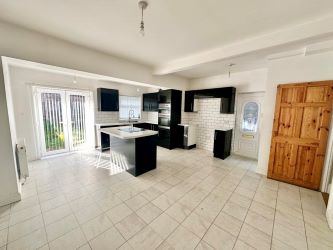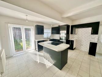 Fitted with an extensive range of black high gloss finish, base and eye level units with fitted contrasting worktop space and inset stainless steel sink unit with mixer tap, shaped matching units to incorporate an American style fridge/freezer and matching island unit with an inset induction cooking hob. Fitted eye-level electric oven and grill, space and plumbing for an automatic washing machine. Tiled surround, plug points, laminate flooring, radiators double glazed window to the rear and French doors leading to the rear garden.