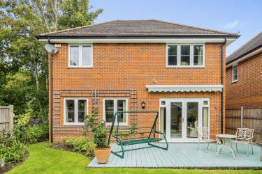 An impressive four bedroom two bathroom modern detached house with driveway parking, garage and a private rear garden, adjacent to Cove Infant School. This modern house was built in 2008 and comprises a spacious entrance hallway, with a kitchen/breakfast room, front-aspect study/office, ground floor WC and a full-width reception room to the rear with fireplace, and double doors opening onto the private rear garden. The first floor accommodation consists of four double bedrooms with built-in wardrobes, and two bathrooms. The private rear garden is south facing, with a decked area for entertaining and a full-width lawn, with shrub borders. The property also boasts an internal garage with a remote controlled electric door, and a generous driveway with ample parking.