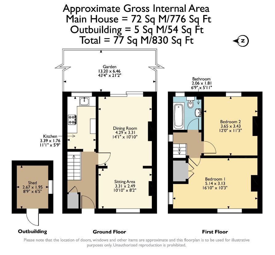 Accommodation comprises entrance hall with inbuilt storage and stairs rising to the first floor, leading into the double length through reception room with window to front, sliding doors to the rear onto the garden, and ample space for relaxing, entertaining and dining. The separate kitchen comprises a range of matching wall and base units with work surfaces and breakfast bar area, incorporating inset sink unit, inbuilt hob with overhead extractor, electric oven, and further space for appliances. To the first floor, there are two well sized double bedrooms, plus a family bathroom with older style white three piece suite.