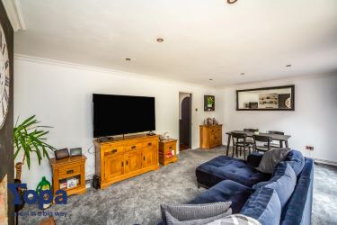 The open plan living/dining room offers extensive space, dual aspect natural lighting through the large French patio doors leading out into the garden, and the sliding doors to the conservatory. Tastefully decorated, and featuring a log burner in a feature fireplace this space forms the 'hub' of the home. Perfect for entertaining, or for family meal time - the ample space for both living and dining is ideal.