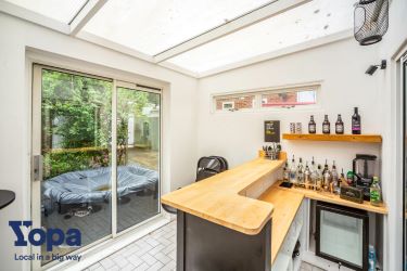 The well sized conservatory, currently used as a bar can be a true multi-use room and offers an abundance of uses thanks to its brick build, lighting and power.