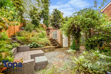 Outside, you'll find a large tiered garden, offering an escape to nature. Featuring a mix of mature shrubs, plants and trees set over different levels. There's also a shed and garage outside.