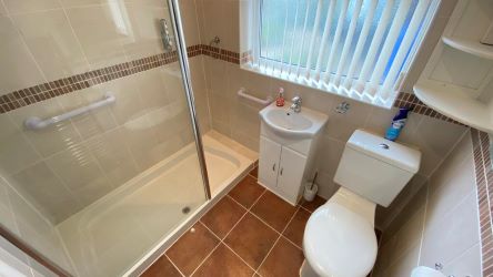 The property boasts 2 bedrooms, the master with fitted wardrobes and storage. The second bedroom has a built-in wardrobe and separate storage cupboard housing the water tank. The lounge boasts dual aspect uPVC windows, carpet and electric fire with surround. A dining kitchen comes complete with a range of base and eye level units, stainless steel sink and drainer, spaces for washing machine, tumble dryer and oven, boiler and door leading to the rear garden. A modern tiled shower room boasts a mains-fed shower, wc, vanity unit sink and wall-mounted radiator.
