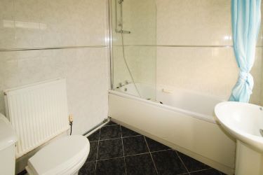 Having a double glazed window, radiator, tiled walls and suite comprising panelled bath with shower over, pedestal wash hand basin and wc.
