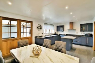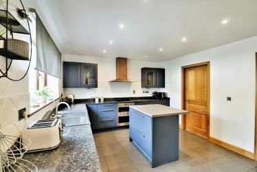Fully fitted wall and base units, roll top work surfaces, stainless steel sink with side drainer and mixertap, built in island, tiled splash back, spot lights to ceiling, integrated fridge and dishwasher, space for oven, rear facing UPVC double glazed window, double doors with access into the conservatory and has access into the utility room.