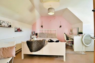 Rear facing UPVC double glazed window, fully fitted wardrobes and holds a wall mounted radiator.