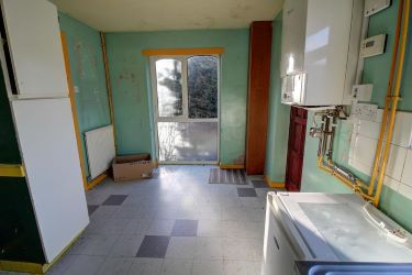 BREAKFAST KITCHEN: 14'7" x 8'9" (4.44m x 2.66m) having base unit and wall cupboard, integrated sink unit, space and plumbing for washing machine, oven, and wall mounted central heating boiler.