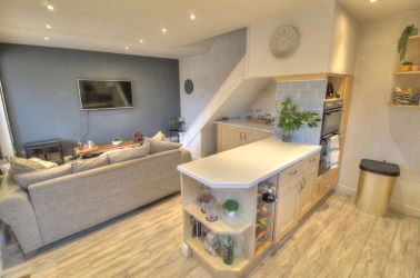 First of all you appreciate the spacious modern layout of the ground floor with an open plan Kitchen, Diner and Lounge. The lounge diner space is bright and has plenty of natural light from those big windows, with the kitchen having generous cupboard space with integrated appliances and a breakfast bar. Space under the stairs has been created into more cupboards which is always useful.