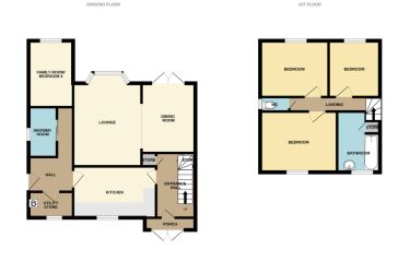 Stairs to the first floor, two built in store cupboards, plug points and a radiator.