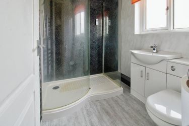 Upstairs are three bedrooms. Two spacious double rooms and a generous single. The family bathroom has a white suite and a walk-in shower.
