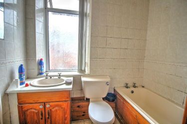 Bathroom/wc - comprising, a low level wc, bath with an electric shower over, vanity hand wash basin, double glazed window to the rear, radiator, and tiled floor and walls.