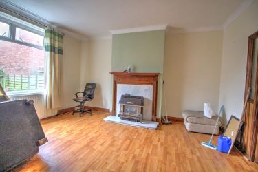 Lounge - 14'9 x 14'4' Double glazed window to the front, radiator, coving to the ceiling, fireplace surround with a gas fire, laminate floor and double doors to;