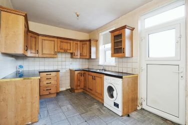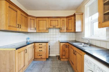 Great sized open kitchen area which has fabulous solid oak base and wall units. With space left for an oven and hob and a washing machine is in situ. Room for either a breakfast bar or table too. Double glazed door and window overlooking the gardens to the rear.