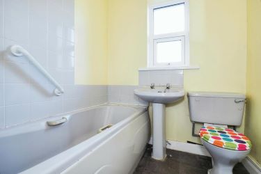 Benefitting from a three piece bathroom suite including a bath , W/C and wash hand basin. Part tiled walls.