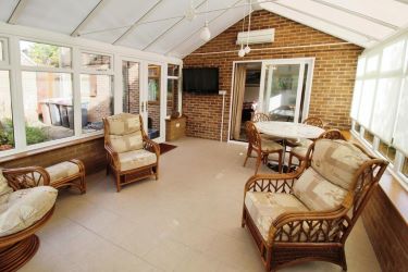 An entrance hallway give access to stairs rising to the first floor and an under stair storage cupboard. The kitchen includes a range of matching cupboards and drawers, sink, gas hob, electric oven and spaces for a dishwasher fridge freezer and washing machine. The spacious lounge has sliding patio door doors which open into the conservatory. this space includes tiled flooring, lighting, electrics and air conditioning. there is a separate dining room which could be used as an office or alternative as well as a ground floor shower room including enclosure shower, WC and sink handbasin.