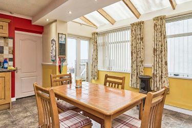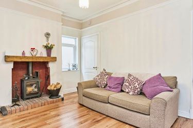 Second reception room - open with kitchen diner. Log burner stove, access to downstiars WC
