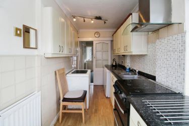 The home includes two separate reception rooms, both with large windows allowing plenty of light to flood in. The first one has a cosy fireplace and provides a serene garden view with direct access to the garden, ideal for entertaining or unwinding. The second reception room features a beautiful bay window, adding character to the space.