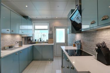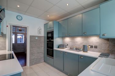 Kitchen 3.36m x 2.55m - A range of modern wall and base units with complimentary Quartz work surfaces over, inset sink unit with mixer tap and drainer, eye level oven grill and a microwave, inset induction hob with extractor above, integrated fridge freezer, tiled flooring, a double glazed window to the rear and door to the rear.