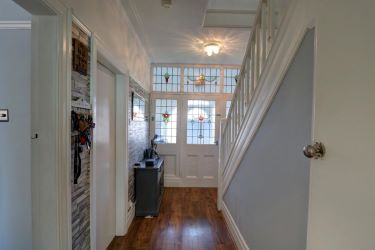 Entrance Hallway - Laminate flooring, radiator and under stairs storage.
