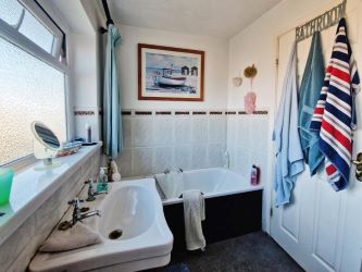 Upstairs, the first floor comprises three bedrooms, including two doubles and a single, all well-proportioned. The family bathroom boasts a four-piece suite for added convenience.