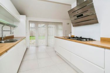 **Entrance and Living Spaces:** Stepping through the grand entrance, you are greeted by a huge welcoming hall that sets a luxurious tone for the rest of the home. The spacious lounge provides a comfortable area for relaxation, perfect for family gatherings or entertaining guests. At the heart of the home is the spectacular open-plan kitchen, dining, and lounge area, designed for modern living. This expansive space features contemporary fixtures and finishes, making it a chef's dream. Three sets of French doors seamlessly connect the indoor and outdoor spaces, opening onto a spacious garden that is perfect for outdoor entertaining, children’s play, or simply enjoying the fresh air.