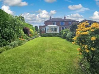 FANTASTIC OPPORTUNITY TO ACQUIRE A MATURE THREE BEDROOM SEMI DETACHED HOME WITH EXTENSIVE AND STUNNING GARDENS and being offered for sale with no onward chain. Well tended garden with well stocked flower/shrub borders..Conservatory added providing additional living space and overlooking the stunning rear garden. Lounge with separate dining room and breakfast room. Two double bedrooms to first floor. Driveway providing off road parking and lawned garden to front elevation. Although the property offers spacious accommodation there is potential to reconfigure or extend with the relevant planning