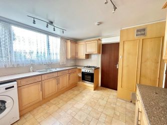 Fitted with a range of wall and base units with fitted worktop space, an inset stainless steel sink unit and mixer tap, a built-in four-ring gas hob with extractor hood over and a fitted electric oven and grill. Space and plumbing for a washing machine, and space for a free-standing fridge/freezer. Tiled surround, plug points, pantry store cupboard and a double-glazed window to the rear.