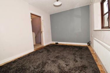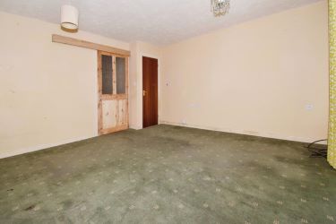 A spacious lounge with a sliding door to the rear garden and a storage cupboard under the stairs.