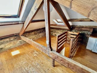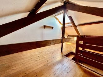 This loft room is a highly usable and flexible space featuring attractive timber beams, two double-glazed Velux windows (rear and side aspects), a radiator, power points, and lighting—perfect for use as a home office, hobby space, or playroom.