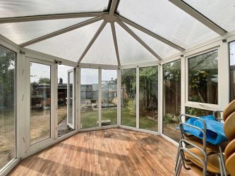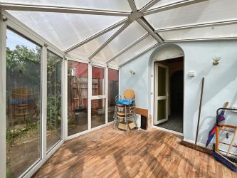 To the rear, the conservatory opens out via patio doors onto a spacious garden, making it ideal for those looking to extend or re-landscape.