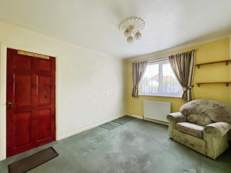 Internally, the accommodation offers ample living space throughout. Enter via the front door into a welcoming hallway, which gives access to two generous reception rooms, perfect for family living or reconfiguration. The kitchen, located at the rear of the property, provides access to a downstairs WC, a large storage cupboard, and a separate pantry to the front – offering flexible storage or conversion potential.