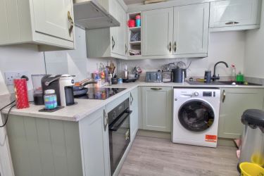 Kitchen/Breakfast Room - 5.4m x 4.8m (L-shaped) Window to front, range of modern gloss kitchen units (fitted 2022), breakfast bar, fitted oven, extractor hood, fitted hob, inset sink, space for fridge/freezer, radiator.