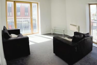 Inside this smartly-presented development is an open plan lounge/kitchen/dining room sees plenty of light and opens up onto your very own Juliette balcony. The kitchen comes complete with glossy black and white cabinets, sleek appliances and an integrated hob. There are also two bedrooms and a bathroom to complete the apartment.