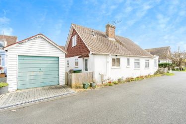 Fantastic opportunity to acquire this detached chalet bungalow on a corner plot on a sought-after private estate in Middleton on Sea, just yards from Elmer Sands Beach. Entered through the sun lounge to the front which is perfect for reading and relaxing, the spacious accommodation offers a large lounge with a square bay window giving abundant natural light and a separate dining room which is currently utilised as a bedroom, a good-sized fitted kitchen has plenty of cupboards and space for a breakfast table, a gas hob with built-in oven and microwave. Bedroom three is on the ground floor as is the shower room and WC. The first floor is approached by a narrow staircase. There are two double bedrooms complemented by a WC with a wash basin. Potential to redevelop or just modernise it is in a great spot close to the beach and glorious coastal walks. Outside, a drive to the front provides hardstanding for 2 cars, and the garage to the rear is accessed from the garden with a personal door, so it is perfect for bikes, boards, etc. CASH BUYERS or large deposit as the property is non traditional build