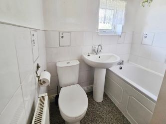 Upstairs there are three bedrooms and the family bathroom with a modern white suite and a shower over the bath.