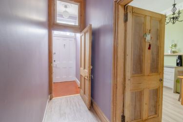 Entering the front door at ground floor level into the entrance vestibule where you have lovely tiled flooring with internal window allowing natural light to filter through into the inner hallway. There is a carpeted, traditional wooden balustrade staircase granting access to the first-floor accommodation with storage beneath, wood effect flooring and a generously sized stained-glass window that spans the height of all three floors, having the ability to project daylight to each level.