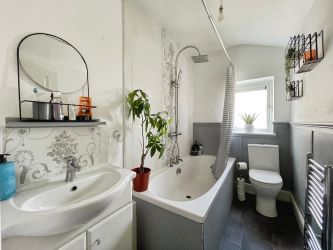 The first floor includes three bedrooms two of which are double. The master bedroom sits to the front of the property and is lovely bright and airy room. The second bedroom is well presented and to the rear and the third bedroom is perfect as a children’s bedroom and could also be utilised as a study/home office. The quality bathroom has been finished with complementary tiling and a three piece suite comprising low flush WC, wash hand basin and a panelled bath with shower over.