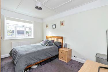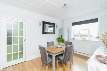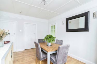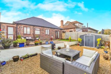 The bungalow offers three well-proportioned bedrooms, including a master bedroom with en-suite shower room. Refurbished family bathroom is a standout feature, boasting full tiling, a white suite with over-bath shower, and luxurious underfloor heating.