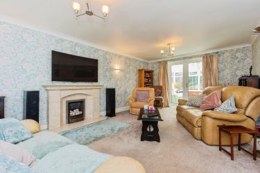 Lounge Feature fireplace housing gas fire, Double glazed small paned effect window to front elevation, central heating radiator, two wall light points, double glazed double opening doors leading to: