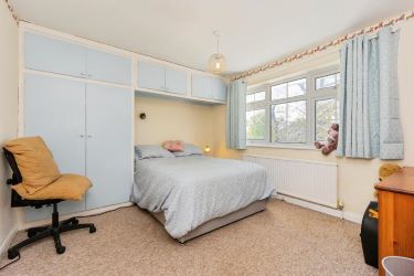 Bedroom three Double glazed small paned effect window to rear elevation, central heating radiator, built in wardrobe and over head storage.