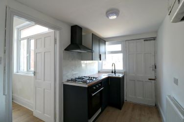 Kitchen 3.68m x 1.86m - A range of wall and base units with complimentary work surfaces over, inset sink unit with mixer tap, inset gas hob with extractor above and oven below, space for a fridge and pluming for a washing machine. A double glazed window to the rear, laminate flooring, radiator and wood door to the rear.