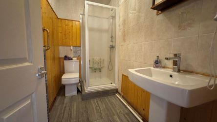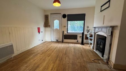 The property features an open plan kitchen and living area, complete with a charming log burner, creating a cosy and sociable space. There is also a downstairs W/C for added convenience. Upstairs, you’ll find two generously sized double bedrooms and a family bathroom.