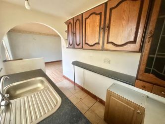 Having base units and wall cupboards, work surfaces, single drainer stainless steel sink unit, plumbing for automatic washing machine, breakfast bar and a double glazed window to the rear elevation.