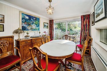 The rear garden is a real standout feature of the home. With its charming pond and lovely greenery, it offers a peaceful space for outdoor dining, gardening, or simply relaxing. The garden is well-kept and provides plenty of room for children to play or for adults to enjoy the calm atmosphere.
