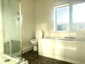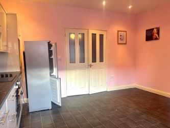 Upon entering, you are welcomed into a good-sized lounge, with double doors opening into a large kitchen/diner featuring a modern fitted kitchen and ample dining space. The first floor offers two bedrooms and a generous family bathroom complete with a three-piece suite and separate shower.