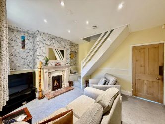 The lounge is a spacious and comfortable retreat overlooking the rear garden. A feature fireplace creates a strong focal point, while the staircase to the first floor and a door to the kitchen complete this sociable living space.