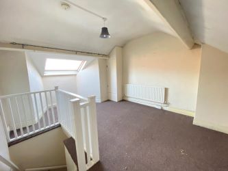 Stairs lead immediately into the loft room: A great size with built-in eves storage, plug points, radiator and double-width Velux window.