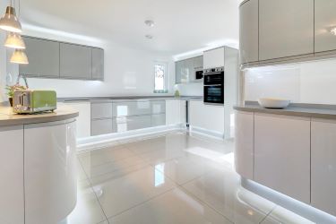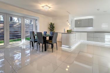 The fabulous kitchen/dining room is a stunning example of a modern luxury space, with high gloss porcelain flooring and fitted with a mix of high gloss grey and white finish handle-less units under a grey quartz composite worksurface. Integrated quality appliances include 5 ring induction hob, double oven, microwave, coffee machine, dishwasher, fridge freezer and wine cooler. The kitchen has modern concealed low energy lighting with pendants over the breakfast bar and further lighting over the dining area where a triple glazed bay with triple doors to the rear garden. A door from the kitchen leads to the utility room with units matching the kitchen with inset sink and drainer unit, plumbing for washing machine, door and window to the side and access to the plant room housing the main heating facilities and wiring points for media installation. A further door leads into the double garage with remote activated roller shutter door, window to the side, smart EV charging station, integrated vacuum system unit, heat recovery ventilation unit.