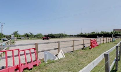 As you enter the main gates to Park Lane stables into the first of two fields which is approximately 2.5 acres and comprise of a large parking area suitable for several horseboxes, with a stable block on the right-hand side comprising of 6 stables, a tack room, feed barn. To the left is 40 x 20-metre Menage with a silica sand surface. The remaining area is separated into several post and rail fenced paddocks. Also within the front field there is a concrete hard standing which had a 10 x 5 metre WW2 Corrugated iron Nissen Hut. This is included in the sale. Following a repair, it can potentially be re-erected on the site. The building is visible on land registry documents and it may be worth contacting the local authority regarding potential conversion/development.